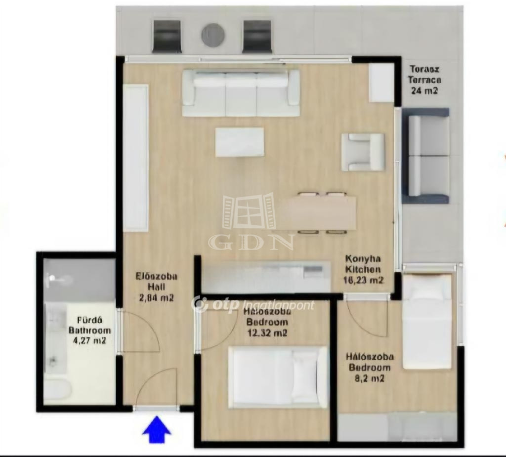 (A 71 m² alapterület a terasz felének beszámításával értendő.)