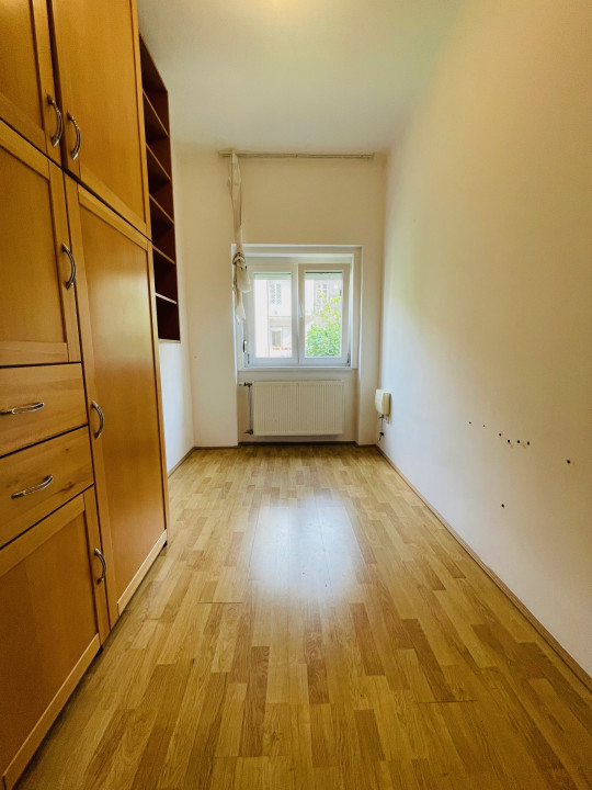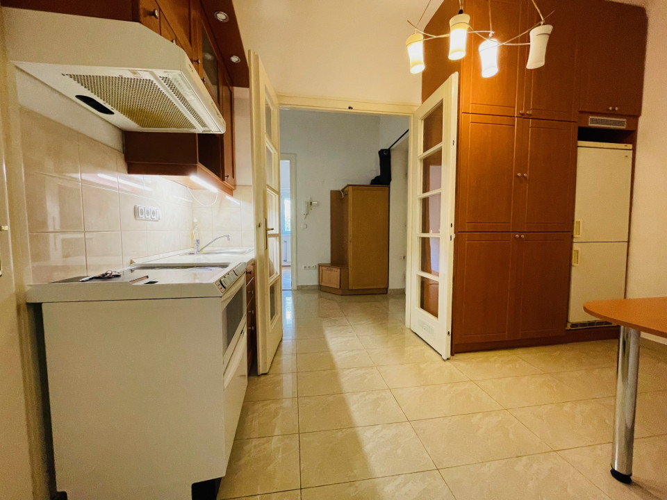 Klimatizált, részben bútorozott és gépesített, a ház pedig háromszintes, lift nélküli, kis lakóközösségű és rendezett.