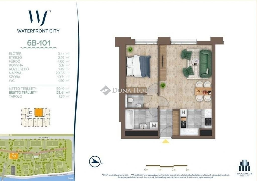 A Waterfront City - 4.ütemében, 2025-ben átadott 6b épület 1. emeletén egy 50 m² alapterületű, irodának, orvosi, esztétikai központnak is megfelelő, a sétáló utcára néző, nagy üvegfrontos lakást kínálunk megvételre.