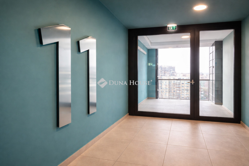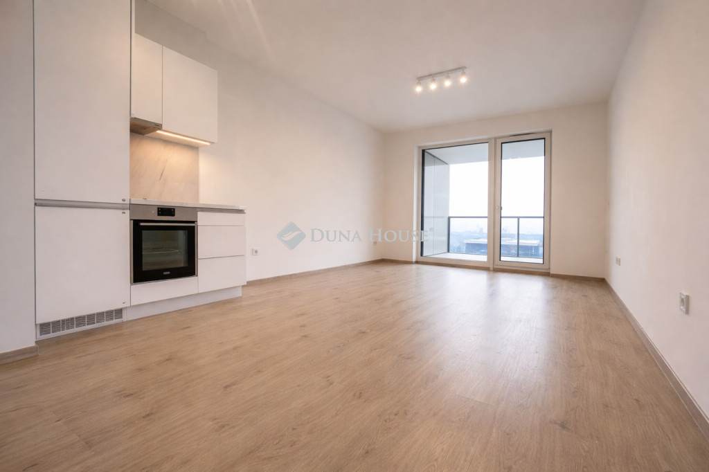Eladó egy 11. emeleti, panorámás, 25 m²-es stúdiólakás 7 m²-es terasszal a modern Waterfront City lakóparkban, az óbudai Duna-part közelében.