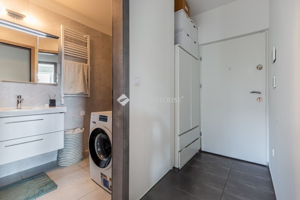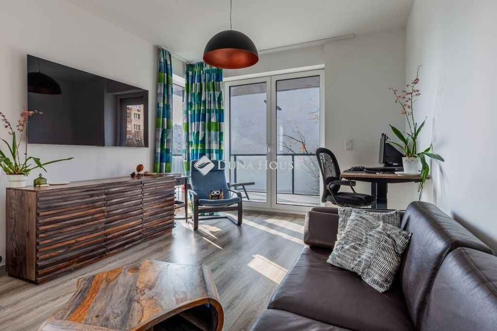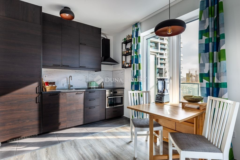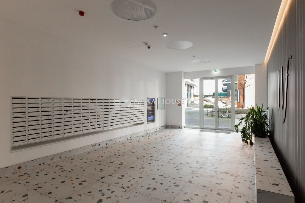 Eladó egy szinte új (3 éves), modern, 42 m²-es lakás + 27 m² sarokterasszal a presztízsértékű Waterfront City lakóparkban, a III. kerület egyik legdinamikusabban fejlődő részén.