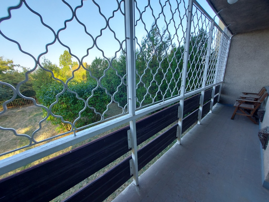 A nappaliból nyíló kényelmes, 8 nm-es terasz a téli időszakban lenyűgöző panorámát nyújt a városra, nyáron pedig felüdülést egy fáradt nap után. Nyílászárói még eredetiek, fából készültek.