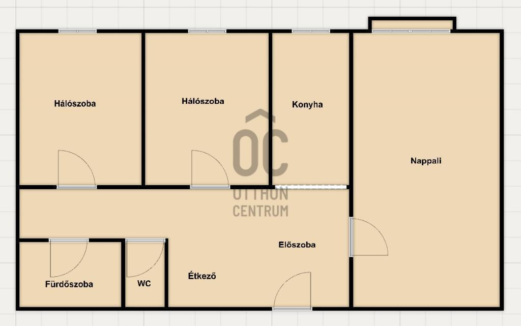 A lakás praktikus elrendezésű: tágas nappali, két külön nyíló félszoba, külön konyha étkezőrésszel, kádas fürdőszoba, külön WC, valamint francia erkély. Az ingatlan felújításon esett át, megújultak a burkolatok, a festés, valamint a konyha, amely gépesített és azonnal használható.