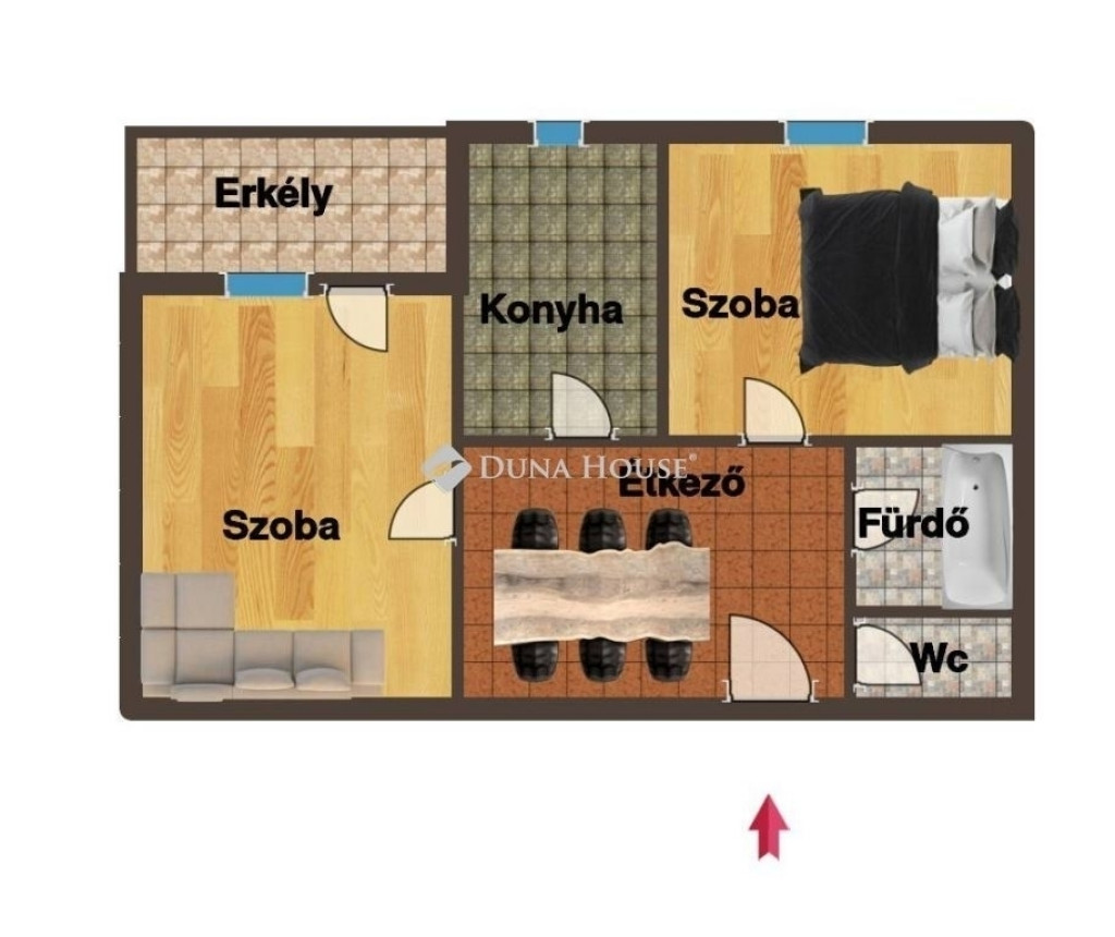 Kialakítása: 2 szoba, fürdő, külön wc, étkező, 4.85 m2 erkély