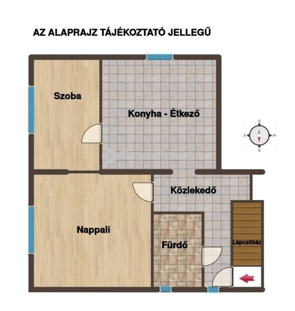 Az ingatlan egy kis létszámú, mindössze 4 lakásos, téglaépítésű ház első emeletén helyezkedik el. Elosztása kiváló: tágas nappali, külön hálószoba, nagyméretű, étkezős konyha, valamint fürdőszoba szolgálja a kényelmet. A szobák keleti, a konyha déli tájolású, így a lakás egész nap világos és barátságos.