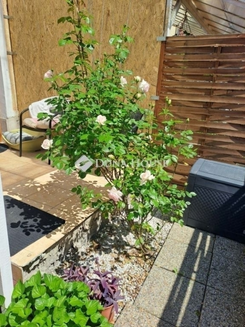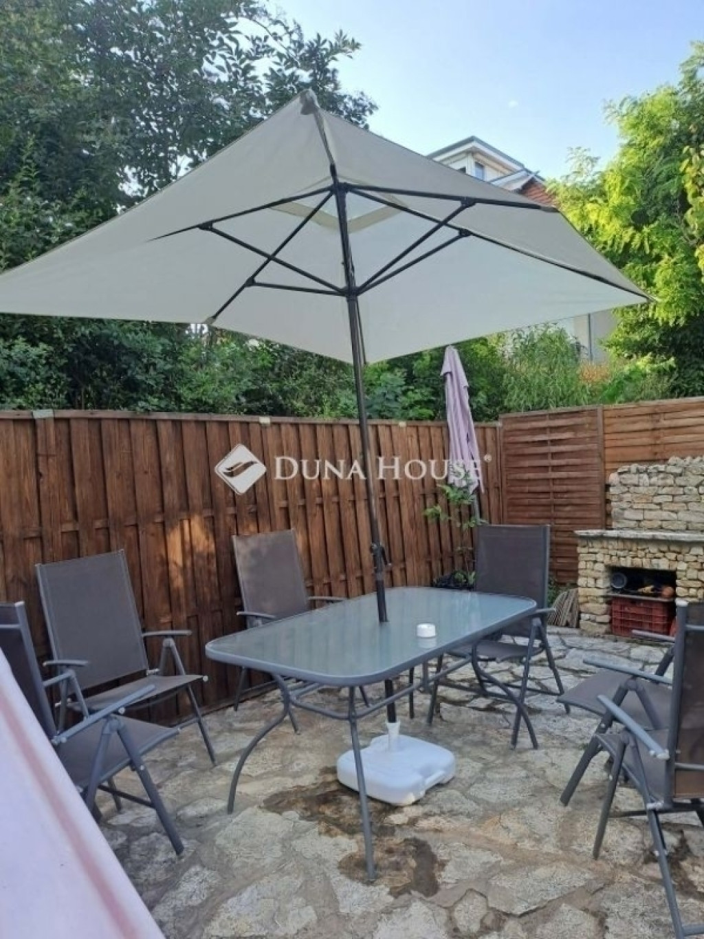 A teljesen elkülönített, saját használatú, 200 m²-es kert ideális teret biztosít pihenéshez, családi és baráti összejövetelekhez. A kertben téglából épített sütögető-bográcsozó rész, kerti tároló, valamint egy 5 m²-es fedett terasz is kialakításra került.