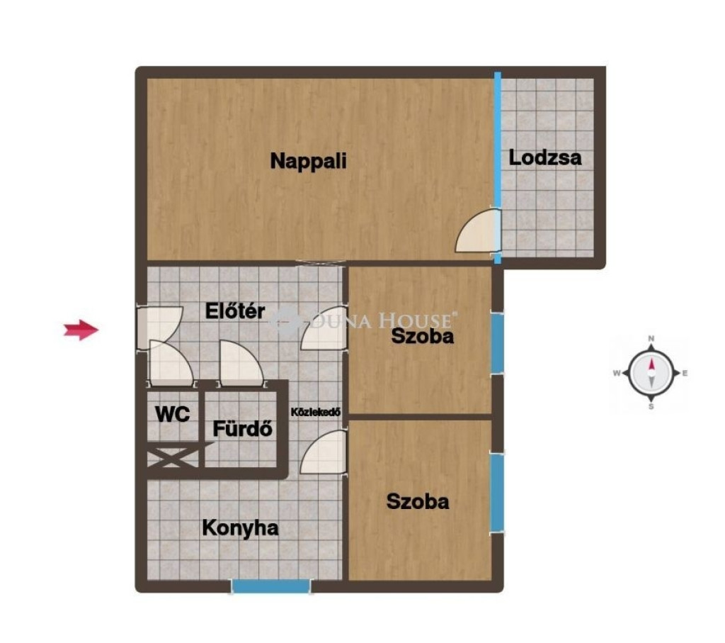 Az előszobából nyílik a különálló fürdőszoba és WC, balra van a Nappali a Lodzsával, kilátással az épület meletti parkos részre. Az előszobába visszatérve egy közlekedőn keresztül elérhető a másik két szoba, melyek szintén a parkos részre néznek, illetve a konyha, ami déli tájolású. A lakás elrendezése és kialakítása, úgy gondolom nagyon praktikus, akár gyermekes családok számára is.