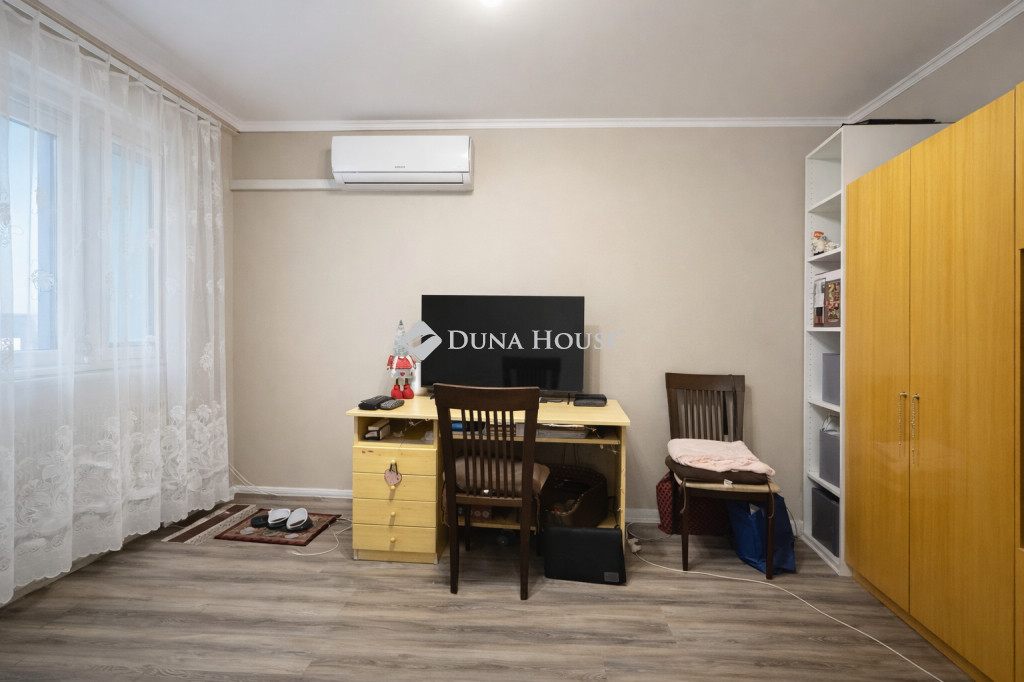 Az elrendezés praktikus: két szoba, konyha, fürdőszoba, valamint egy beépített, körülbelül 4 m²-es erkély áll rendelkezésre. A fűtés távfűtéssel, egyedi mérővel történik, klímaberendezés is rendelkezésre áll, így a lakás fenntartása jól tervezhető és kedvező.