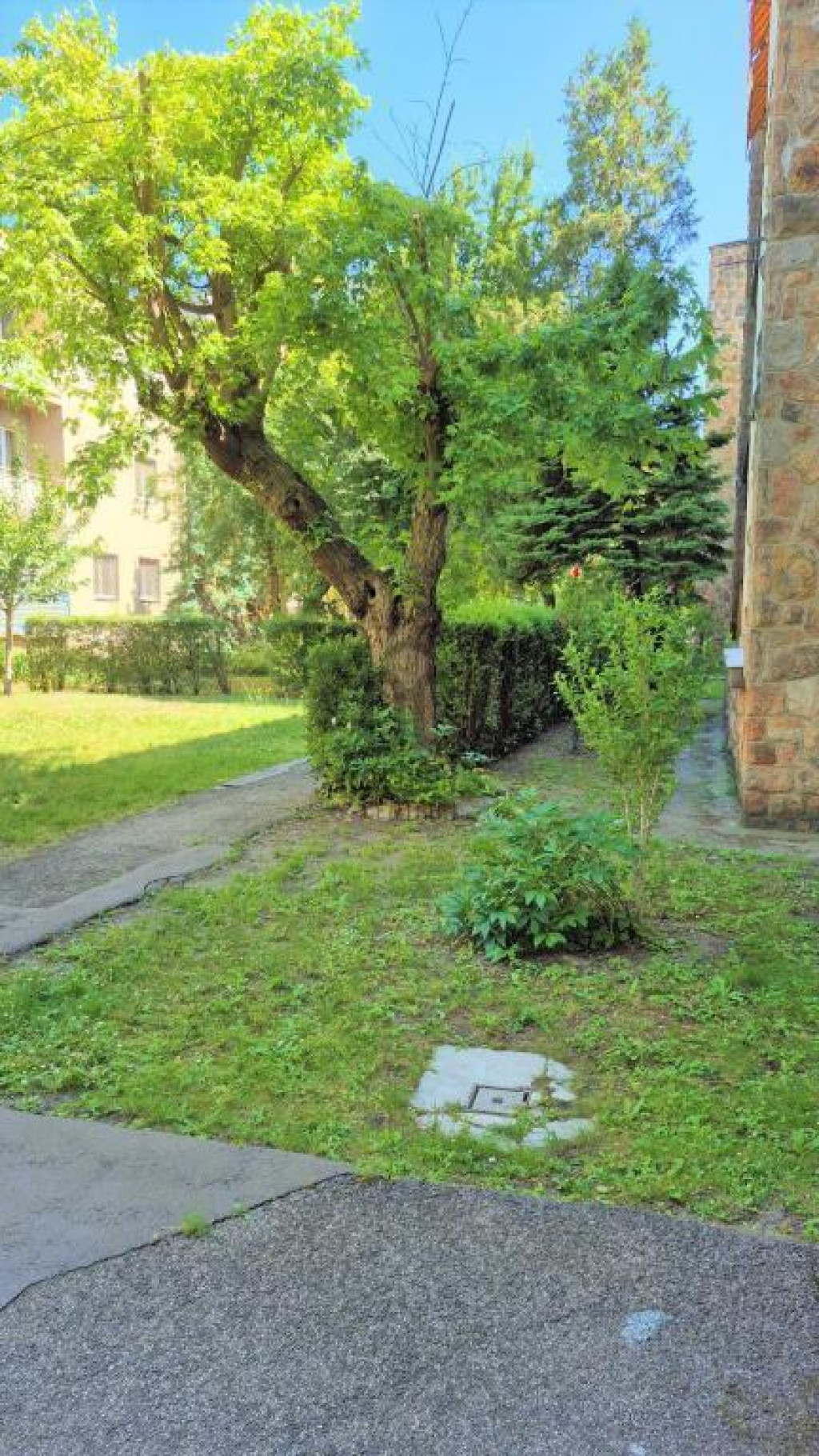 - az épület körül szép, kertész által gondozott kert található, nagy fákkal;