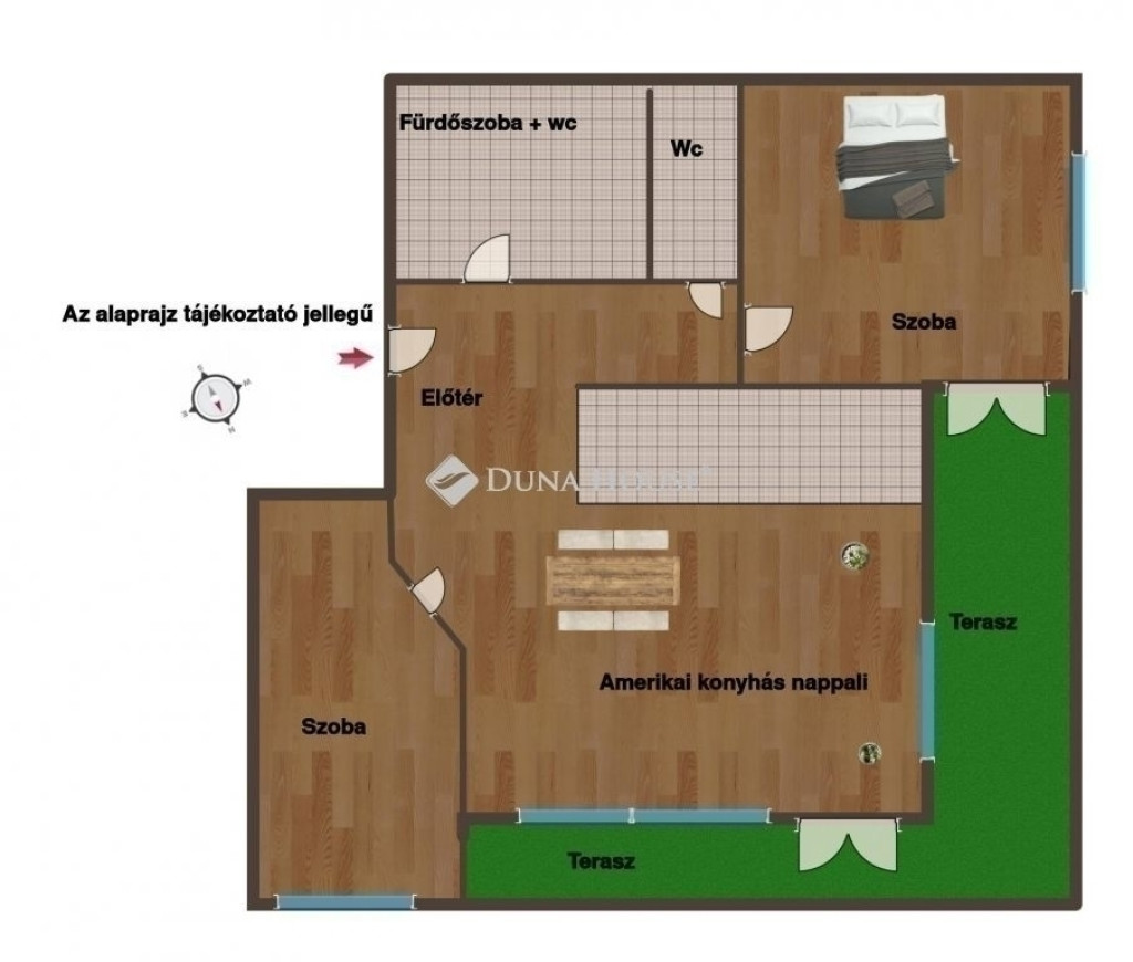 A 65 m²-es lakás igényes belső kialakítással, 21 m²-es tágas terasszal, 5 m²-es külön tárolóval, valamint saját teremgarázs-beállóval rendelkezik minden az ár részét képezi.