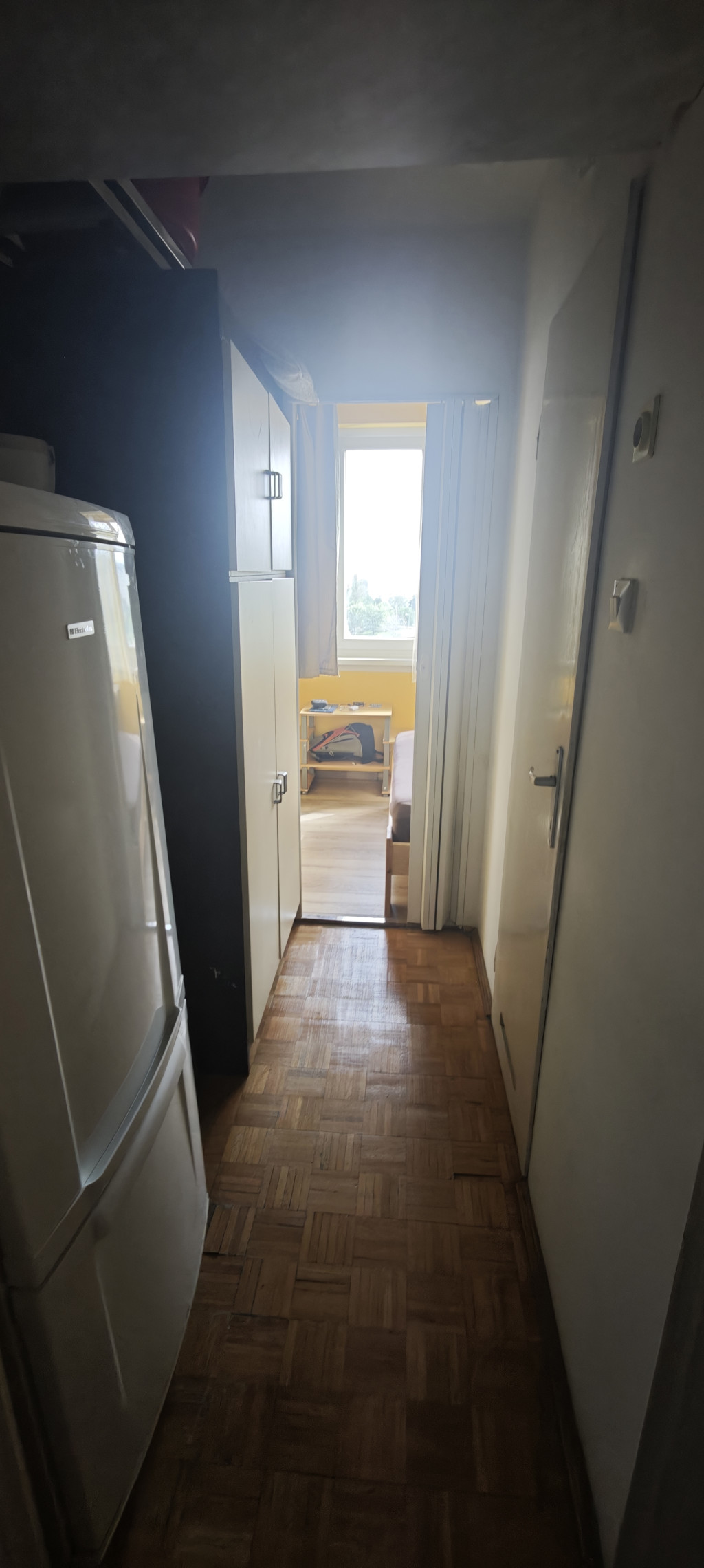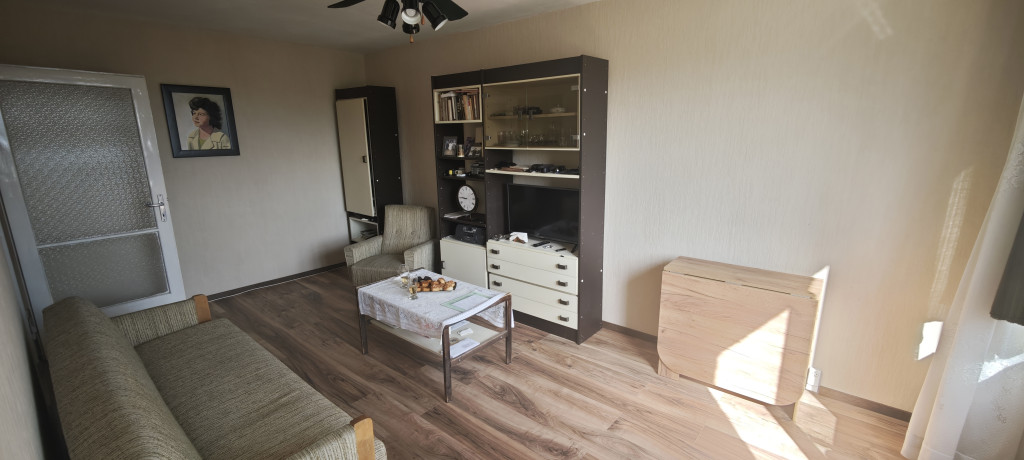 Az ablakok déli tájolásúak A nappali 17.5 nm-es laminált burkolatú. A félszoba 6 nm-es és két ajtaja is van, így a lakás körbejárható.