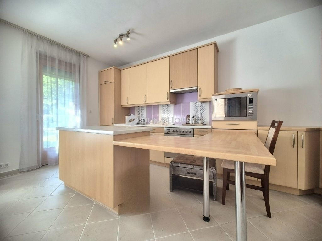 A lakás egy amerikai konyhás nappaliból, egy hálószobából, gardróbhelyiségből külön fürdőszobából és WC-ből áll. A nappali és a hálószoba is saját használatú teraszra valamint a társasház kertész által rendben tartott kertjére nyílik.