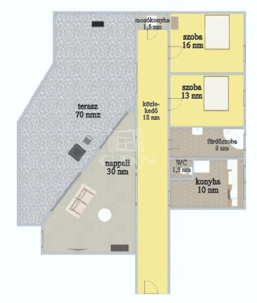 A teremgarázs szinten található egy 70 négyzetméteres, saját, zárható, tároló helyiség, melynek ára további 5 M Ft.
