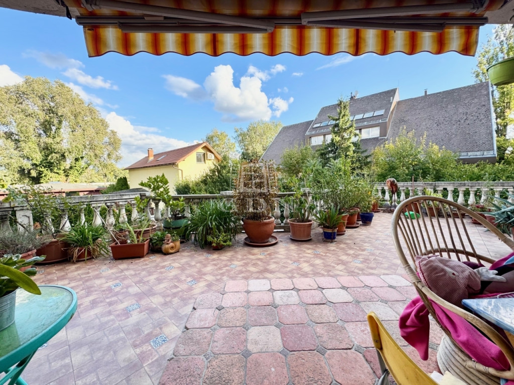 III. kerületeben, Budapest egyik legkedveltebb Duna parti sétányán, a Római part Pünkösdfürdői részén, csendes, NEM ÁRTÉRI utcában, jó közlekedés és ellátottság mellett, 2000-ben, Mediterrán stílusban épült, szigetelt, 9 lakásos, társasházban, 1. emeleti, 98 nm-es, nappali + 2 hálószobás, ablakos konyhás, HATALMAS 70 NM-ES TERASSZAL rendelkező, napos-világos (D-K) fekvésű, kombinált gázcirkó fűtésű, jó állapotú, klimatizált, riasztórendszerrel felszerelt, rugalmasan költözhető, TEHERMENTES lakás, beépített, gépesített konyhával, teremgarázs beállóval és tárolóval, kulturált lakóközösségű házban eladó.