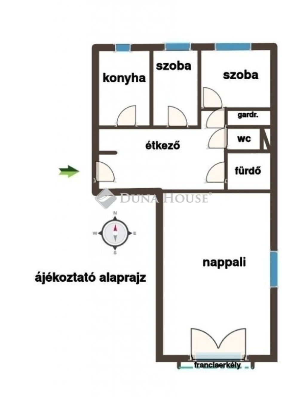 - minden szoba külön nyílik