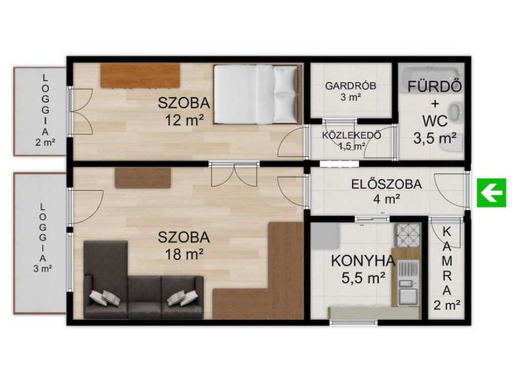 Az ingatlan különlegessége a két loggia, amelyek kellemes, zöld környezetre néző panorámát kínálnak. A magas emeleti elhelyezkedés és a kedvező tájolás nyugodt, levegős atmoszférát biztosít.