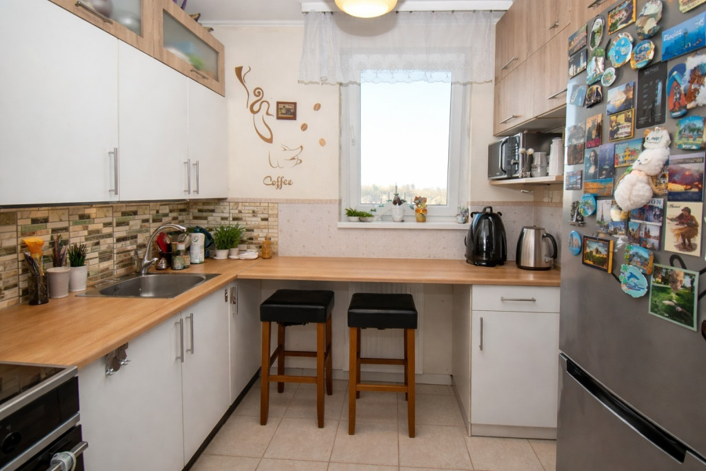 A természetes fénnyel bőségesen ellátott, ablakos konyha jól szellőztethető. A praktikus elrendezést külön kamra segíti, amely kényelmes tárolási lehetőséget nyújt, míg a gardróbhelyiség további rendszerezési teret biztosít.