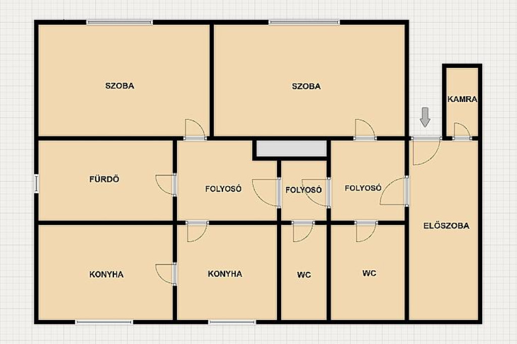 Az ingatlan 4 külön nyíló szobával és 2 külön WC-vel rendelkezik, elrendezése praktikus és jól alakítható. Közepes állapotú, így az új tulajdonos saját igényei szerint alakíthatja tovább. A cirkófűtés gazdaságos fenntartást biztosít.