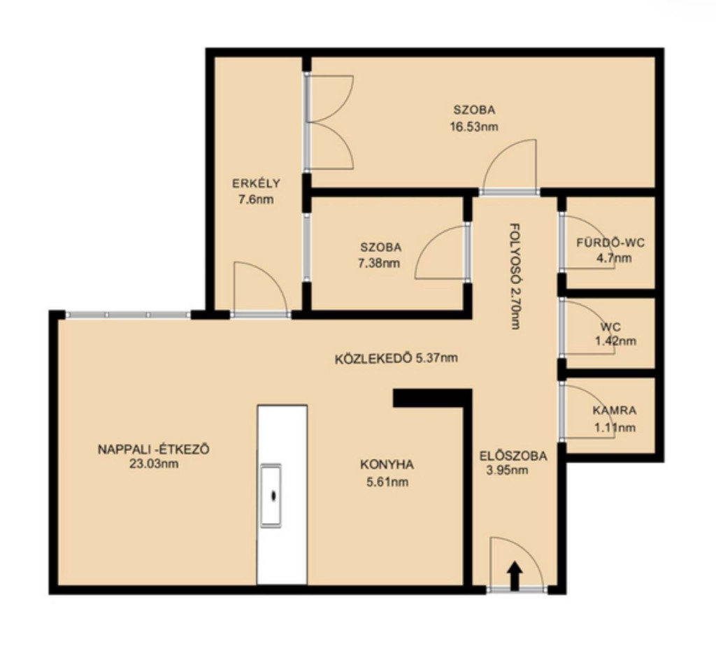 - 2 külön nyíló hálószoba, melyek közül az egyik szintén kapcsolódik a közel 8 m²-es erkélyhez