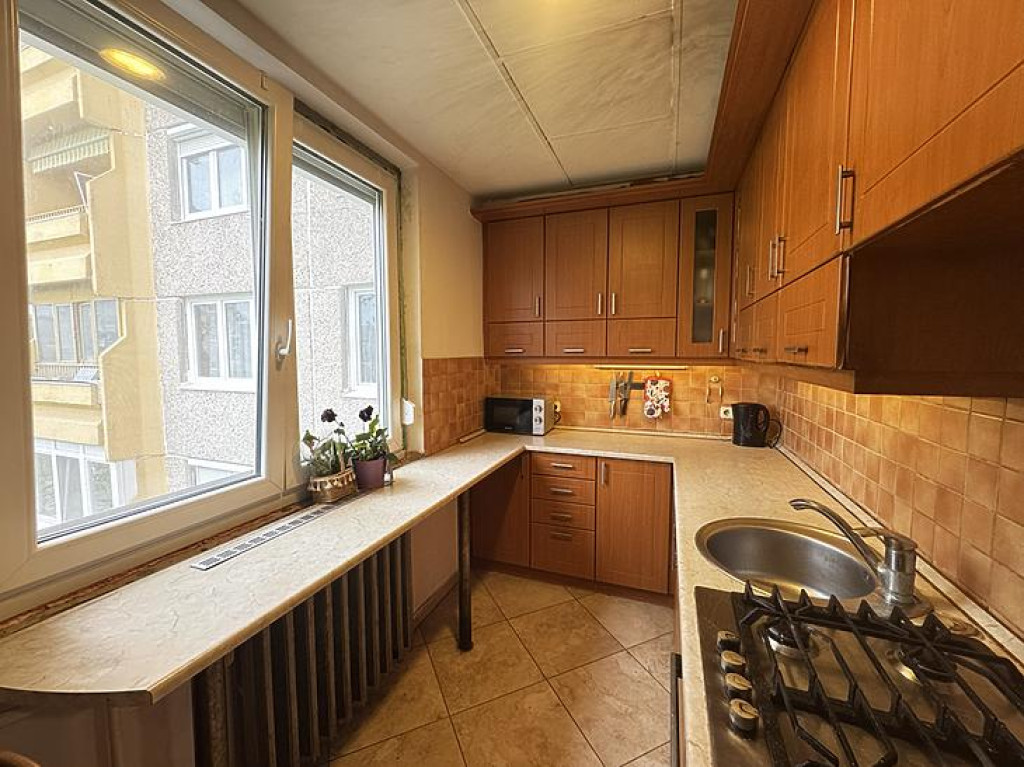 A konyha tágas, világos, nagy ablakkal rendelkezik, így a természetes fény szinte egész nap beárad. Bútora újabb, jó állapotú, a mindennapi használathoz kényelmes elrendezéssel, és beépített elektromos sütővel felszerelt.