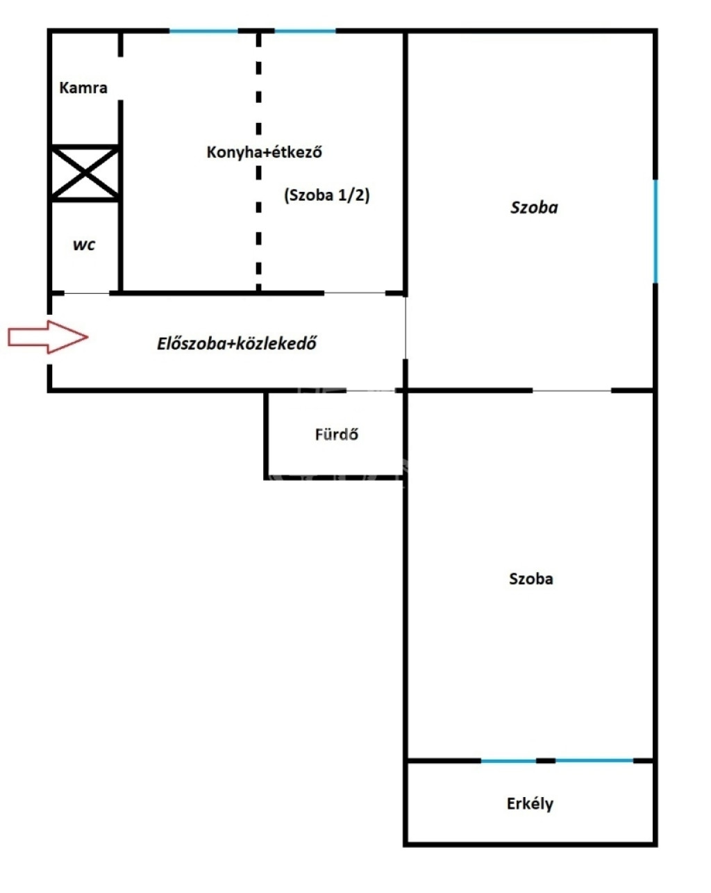 Az ingatlan rendkívül jó elosztásának köszönhetően, könnyedén akár 3 vagy 2+2 félszobássá is alakítható.