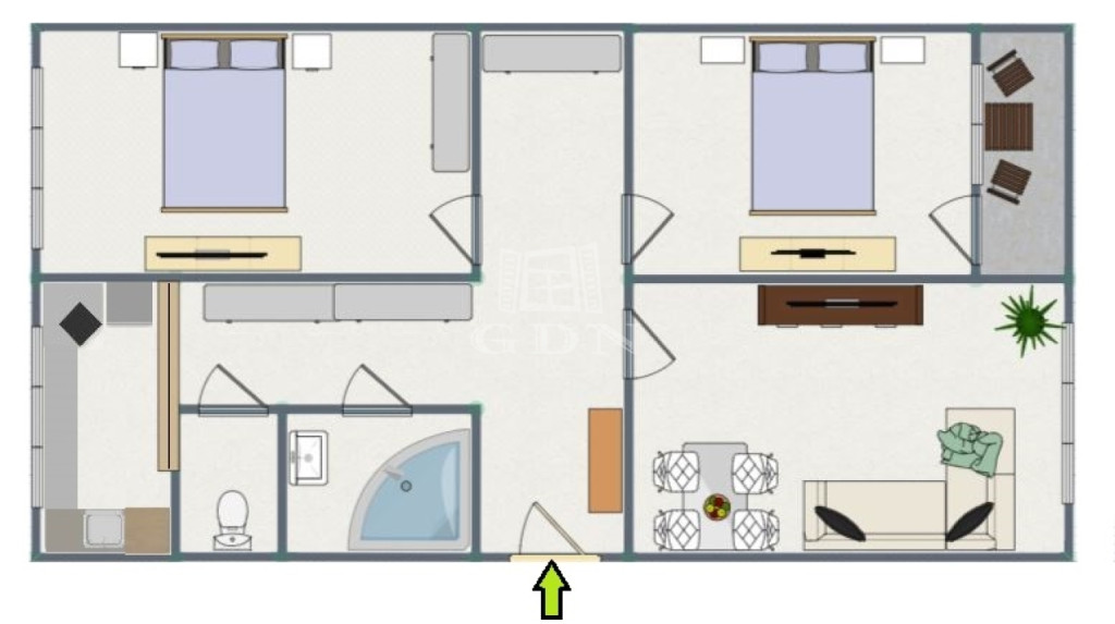 Tágas nappali, két külön nyíló háló, ablakos konyha és erkély biztosítja a kényelmet és a jól élhető tereket.