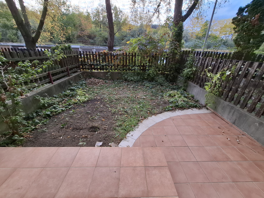 A kert kb. 25 m2-es, ebből egy kisebb részt terasznak alakítottak ki ahol kényelmesen elfér egy kerti garnitúra.