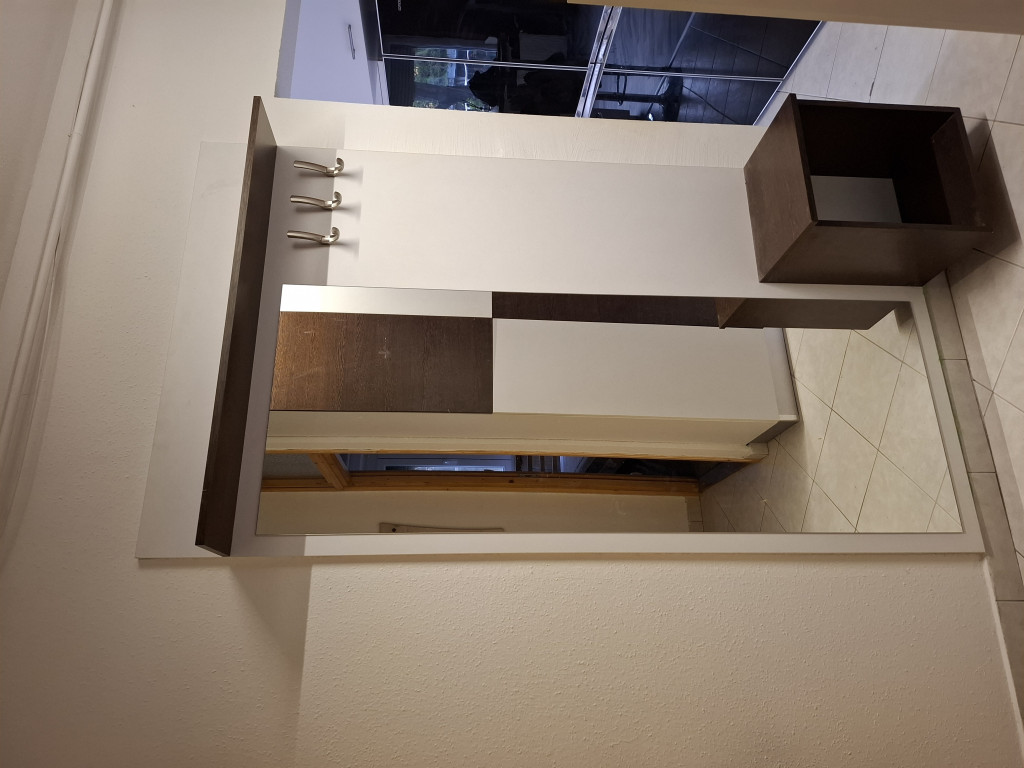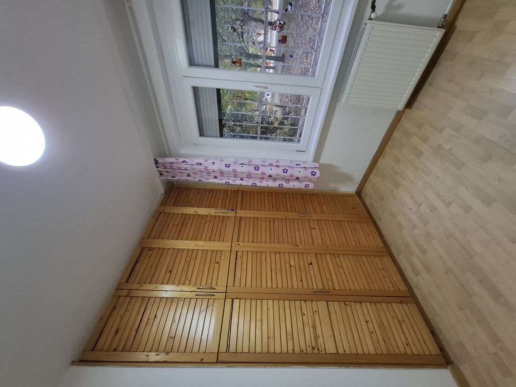A két félszobát beépített szekrény választja el, melynek kibontásával egy tágas hálószoba is kialakítható.