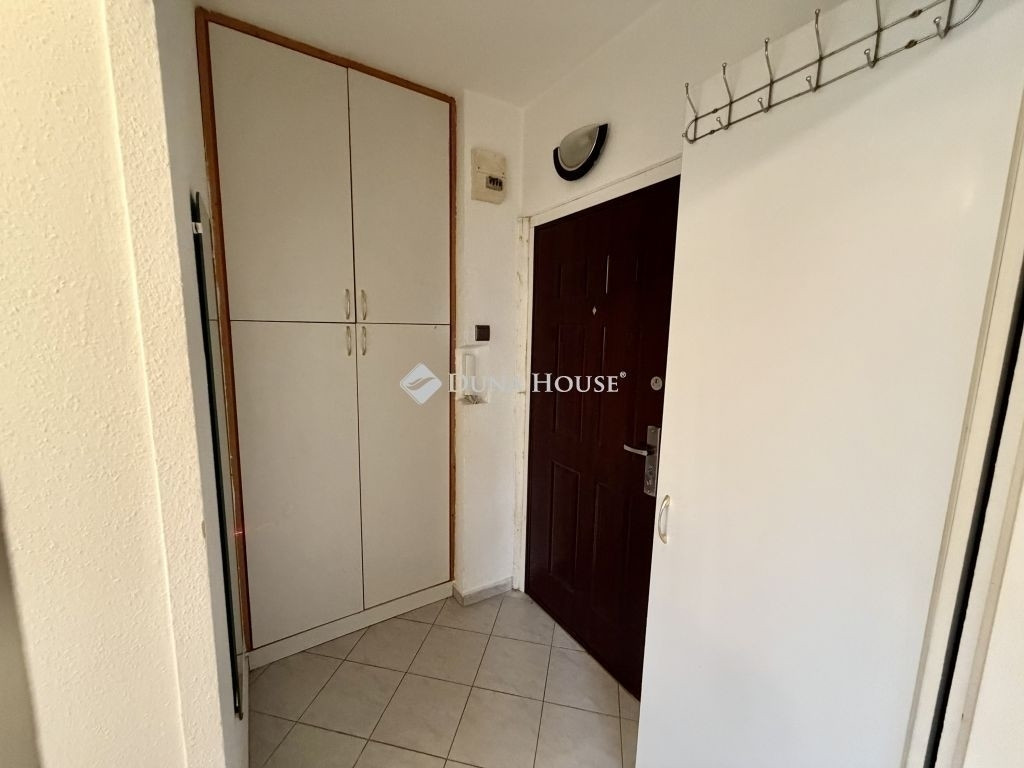 A lakásba belépve jobbra egy beépített szekrény kapott helyet, amely praktikus és bőséges pakolási lehetőséget biztosít.