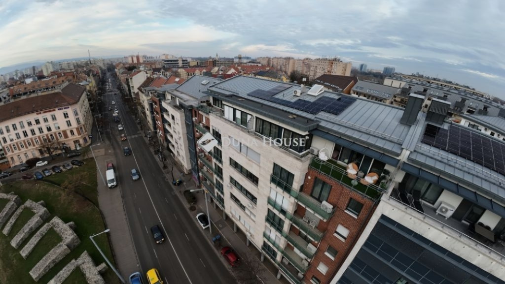 Eladó egy elegáns, moden 7. emeleti, 23 m²-es bájos erkéllyel rendelkező, ÉNY-i tájolású, 3 szobás, 2 fürdőszobás lakás Óbuda szívében. A lakás 2024-ben teljeskörű felújításon esett át, így egy minden részletében átgondolt, modern és stílusos enteriőr várja leendő tulajdonosát. A nagy üvegfelületeknek köszönhetően a lakás rendkívül napfényes, tágas térérzetet biztosít, miközben lenyűgöző panorámát kínál az Amfiteátrumra és a budai hegyekre. A hangulatos teraszról a naplemente is élvezhető, ami tovább emeli az otthon különleges atmoszféráját.