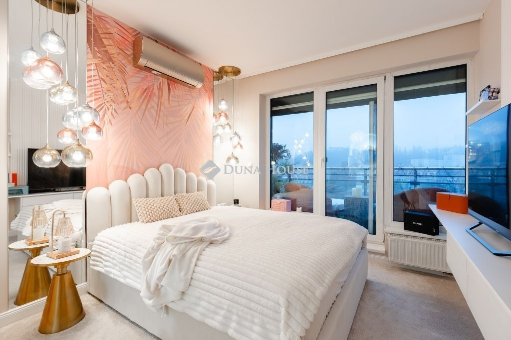 Eladó egy elegáns, moden 7. emeleti, 23 m²-es bájos erkéllyel rendelkező, ÉNY-i tájolású, 3 szobás, 2 fürdőszobás lakás Óbuda szívében. A lakás 2024-ben teljeskörű felújításon esett át, így egy minden részletében átgondolt, modern és stílusos enteriőr várja leendő tulajdonosát. A nagy üvegfelületeknek köszönhetően a lakás rendkívül napfényes, tágas térérzetet biztosít, miközben lenyűgöző panorámát kínál az Amfiteátrumra és a budai hegyekre. A hangulatos teraszról a naplemente is élvezhető, ami tovább emeli az otthon különleges atmoszféráját.