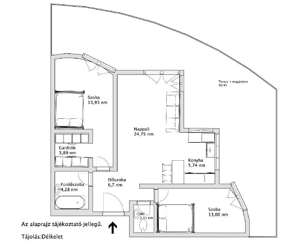 Ez a lakás tökéletes választás mindazoknak, akik zöld, csendes környezetre vágynak, mégis elérhető távolságra szeretnének maradni a belvárostól.