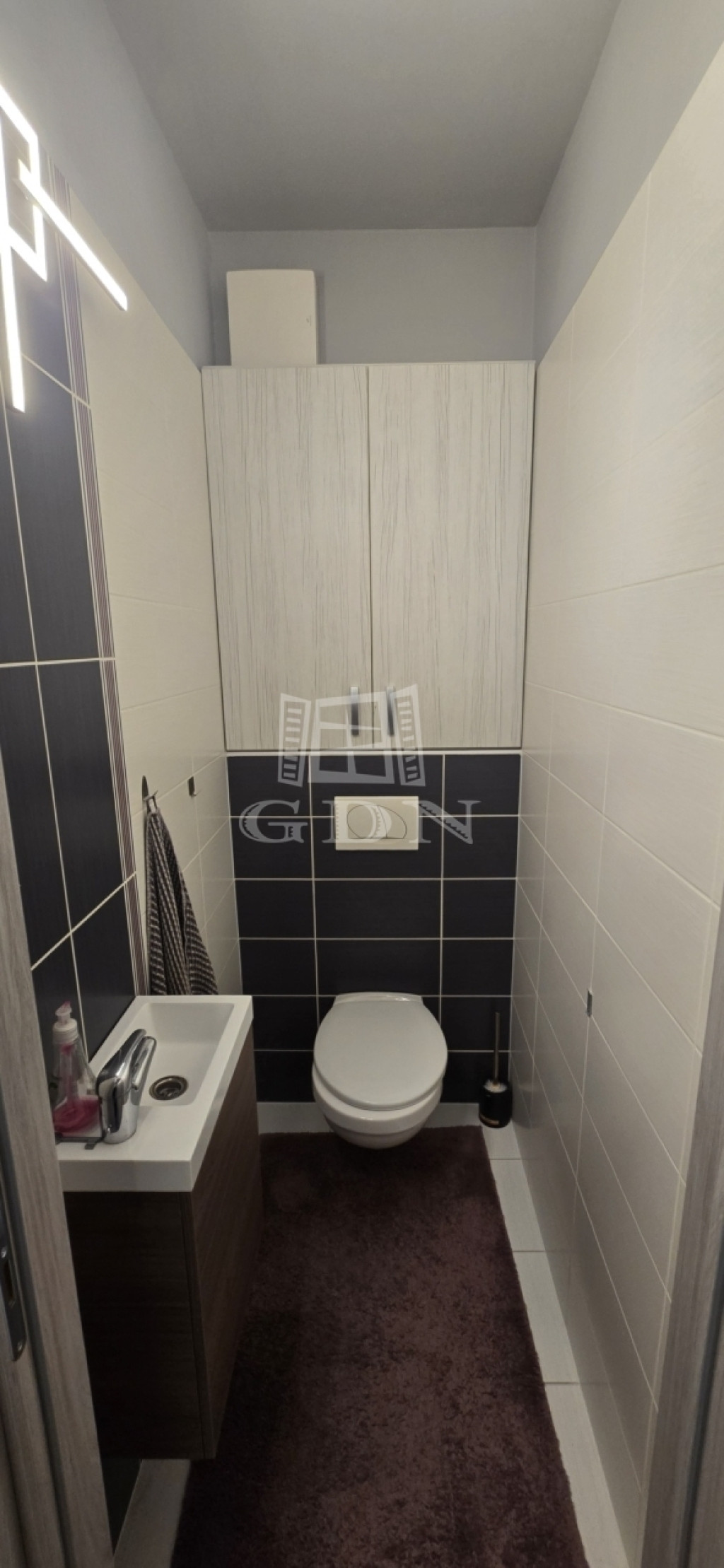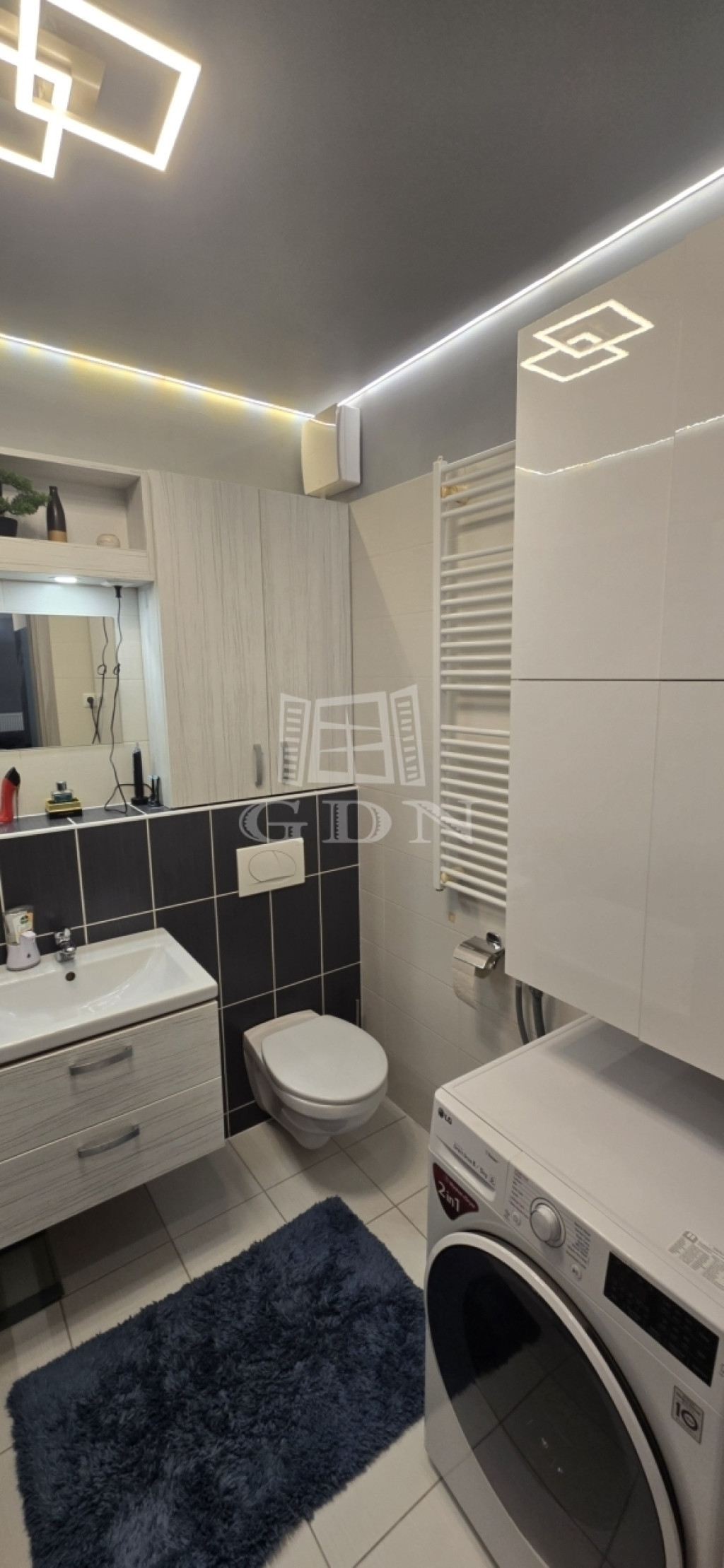 A két külön nyíló hálószoba jól szeparált, így ideális akár kisgyermekes családnak, akár otthonról dolgozó párnak. A fürdőszoba és a külön WC modern burkolatai, valamint a gépesített konyha igényes kivitelezése tovább erősíti a harmonikus összképet.