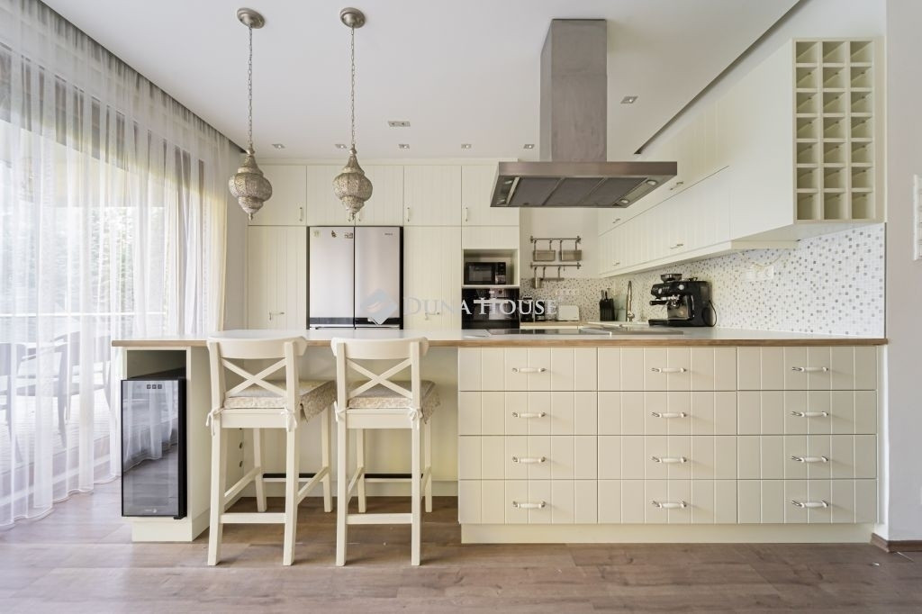 A letisztult eleganciát képviselő otthon központi tere a kertkapcsolatos, amerikai konyhás nappali és étkező, amelyet Miele gépekkel felszerelt, modern konyha egészít ki. Emellett három hálószoba, külön gardrób, két fürdőszoba és külön WC is szolgálja a kényelmet.