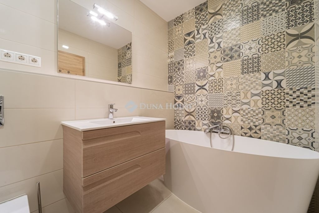 A minőségi burkolatok, egyedi fürdőszobák, valamint az elektromos redőnyökkel és szúnyoghálókkal szerelt nyílászárók mind a luxus életérzést erősítik.