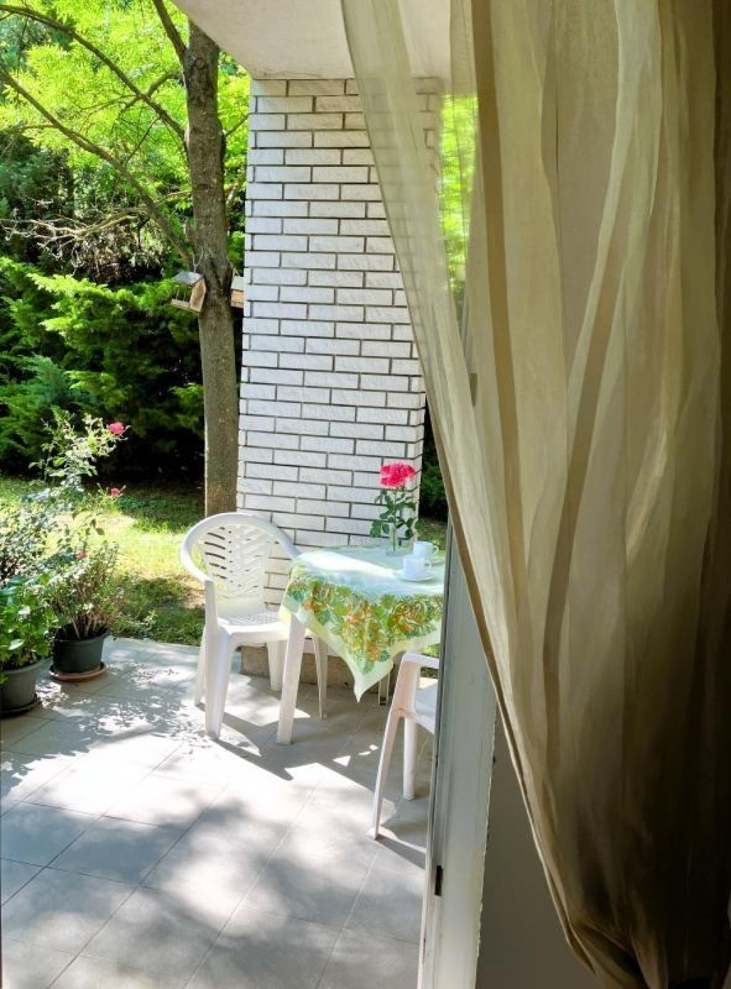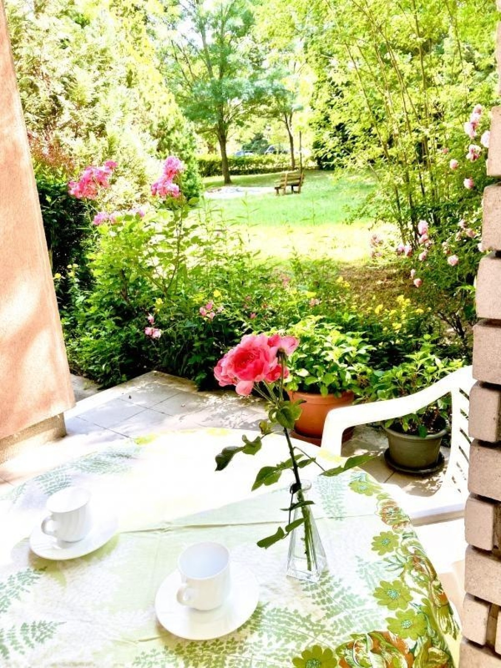 Kertélmény: A lakásból több ponton biztosított a kijárás a társasház privát, zárt, árnyas-ligetes kertjébe. A közösségi udvar az új tulajdonos számára szabadon és háborítatlanul élvezhető, akár a saját 5,77 nm-es teraszról is.