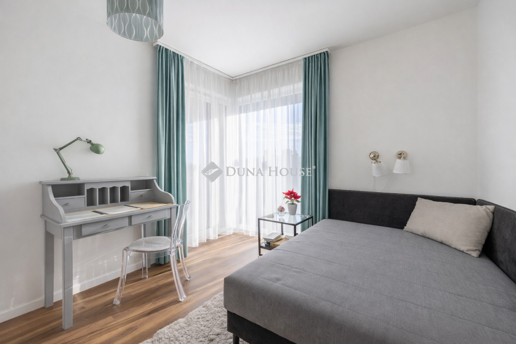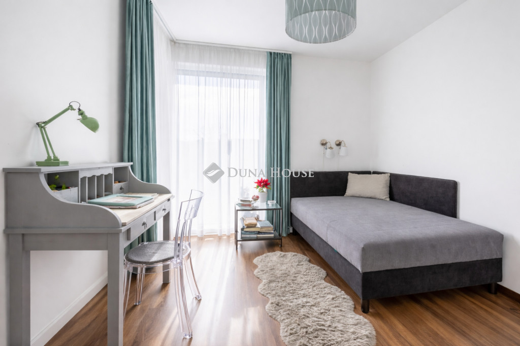 Az ingatlan a társasház első emeletén helyezkedik el, kertre néző ablakokkal, délkeleti tájolással, amely egész nap természetes fényt biztosít. A modern komfortérzetről mennyezeti hűtő-fűtő rendszer gondoskodik.