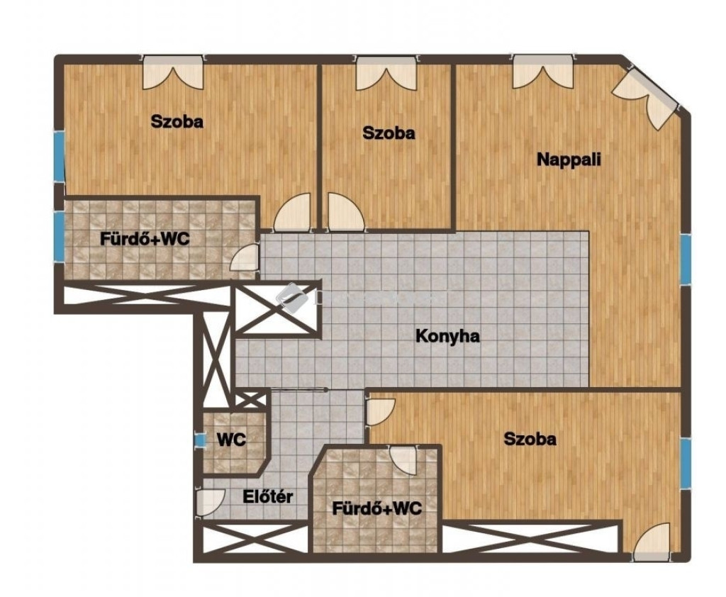 nagy nappali + 2 szoba + 1 félszoba