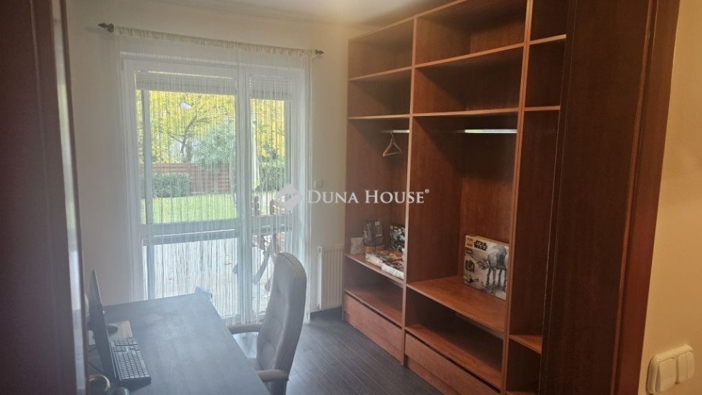 A kb. 300 m²-es, teljesen privát kert és a 72 m²-es, tágas terasz, amelyek közvetlenül a nappaliból és két hálószobából is megközelíthetők. A kertben sütögető és pihenősarok is található, így ideális helyszín családi vagy baráti összejövetelekhez, nyári vacsorákhoz, pihenéshez. A kert hátsó része teljesen intim, így garantált a nyugalom és a zavartalan kikapcsolódás. A lakáshoz teremgarázs-beálló is tartozik, ami a környéken kiemelt kényelmet jelent.