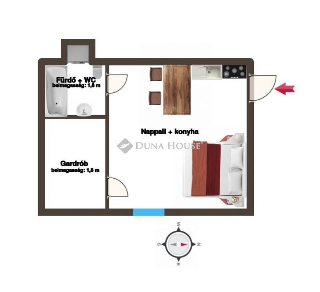 A FÜRDŐ ÉS A GARDRÓB BELMAGASSÁGA 180 CM..