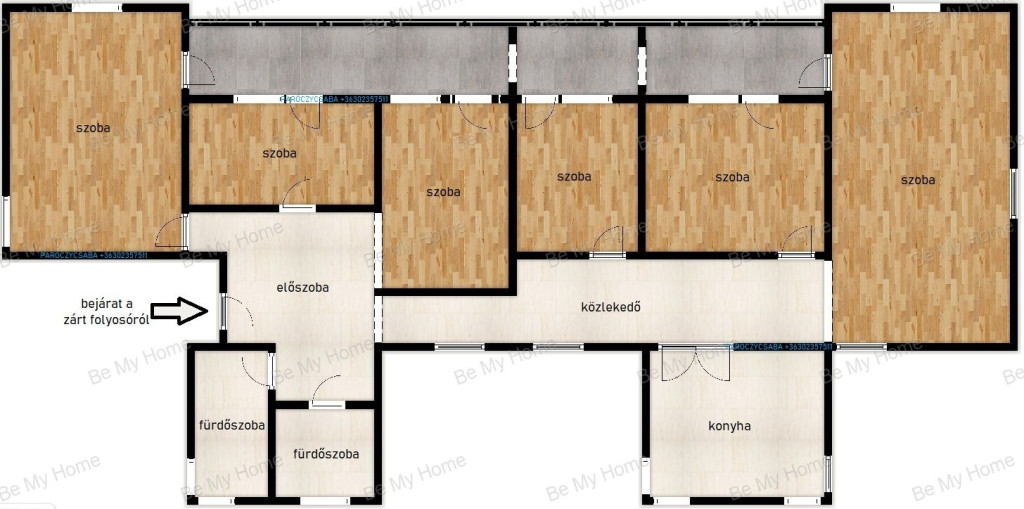 A lakáshoz tartozik egy 30 m2-es saját tároló (jelenleg gym-nek kialakítva),