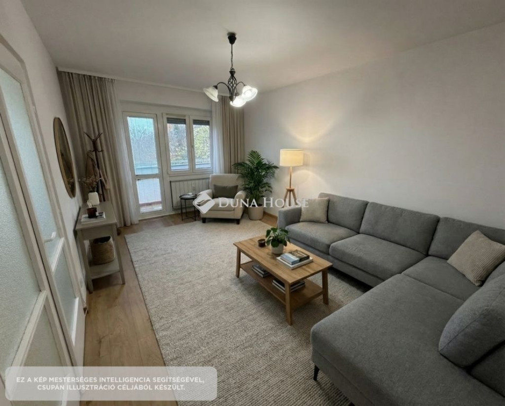 A berendezett helységek képei illusztrációk, a lakás jelenleg bútorozatlan, kivétel a konyhabútor, ami a vételár részét képezi.