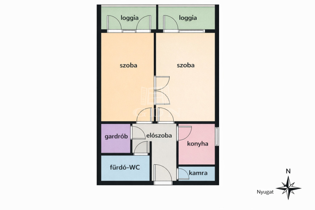 Elrendezése praktikus, a nyugati tájolás ideális benapozottságot ad a délutáni–esti órákban. Az ablakos konyha kellően tágas egy étkező kialakításához, külön kamra is rendelkezésre áll. Egy kivételével a nyílászárók műanyag kivitelűek. További előny a gardróbszoba, ami érezhetően megkönnyíti a bútorozást és a tárolást.