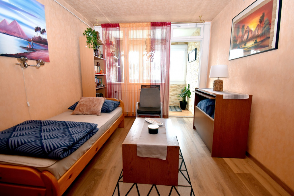 Eladásra kínálunk egy jó állapotú, 2 szobás, nyugati tájolású loggiás lakást a Szőlő utcai faluház 10. emeletén.