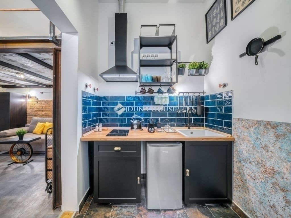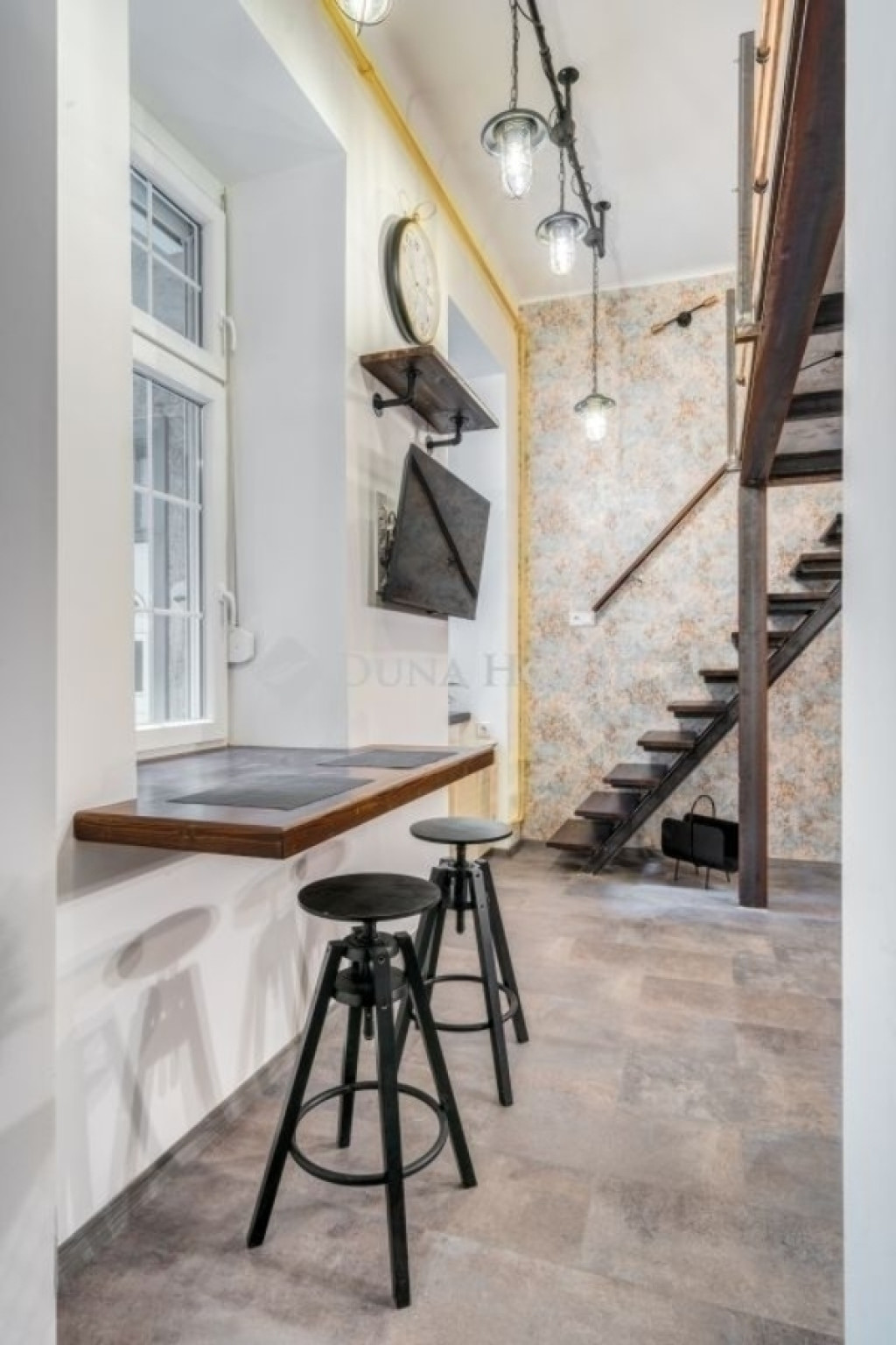 Az ingatlan jellemzői: alapterülete 24nm, ideális akár első lakásnak, akár befektetésnek vagy kiadásra. A fekvőgaléria növeli a hasznos életteret, praktikusan elválasztva a nappali és hálófunkciót, mérete 8nm, magassága 140cm. A lakásban jelenleg teljeskörű felújítás zajlik: új burkolatok, modern gépesített konyha és a legmodernebb külsővel megálmodott fürdőszoba kerül kialakításra, valamint korszerű elektromos és gépészeti rendszerek kerülnek beépítésre. A kislakásban gázkonvektor gondoskodik a fűtésről. Földszinti elhelyezkedése révén könnyen megközelíthető, a társasházban csendes a belső udvar, jó a hangulat, jó lakóközösség jellemzi.