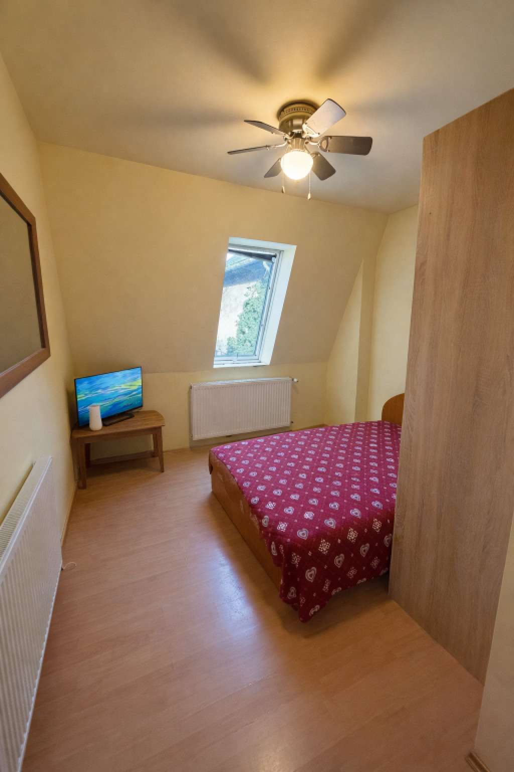 Az emeleten két külön nyíló, jól használható hálószoba, valamint egy zuhanyzós fürdőszoba WC-vel került kialakításra.