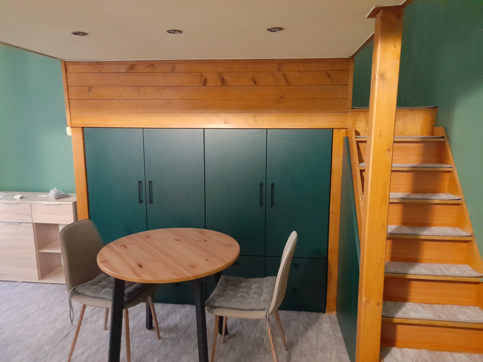 -1 szoba + galéria, konyha, fürdőszoba. Jól szeparált, praktikus terek.