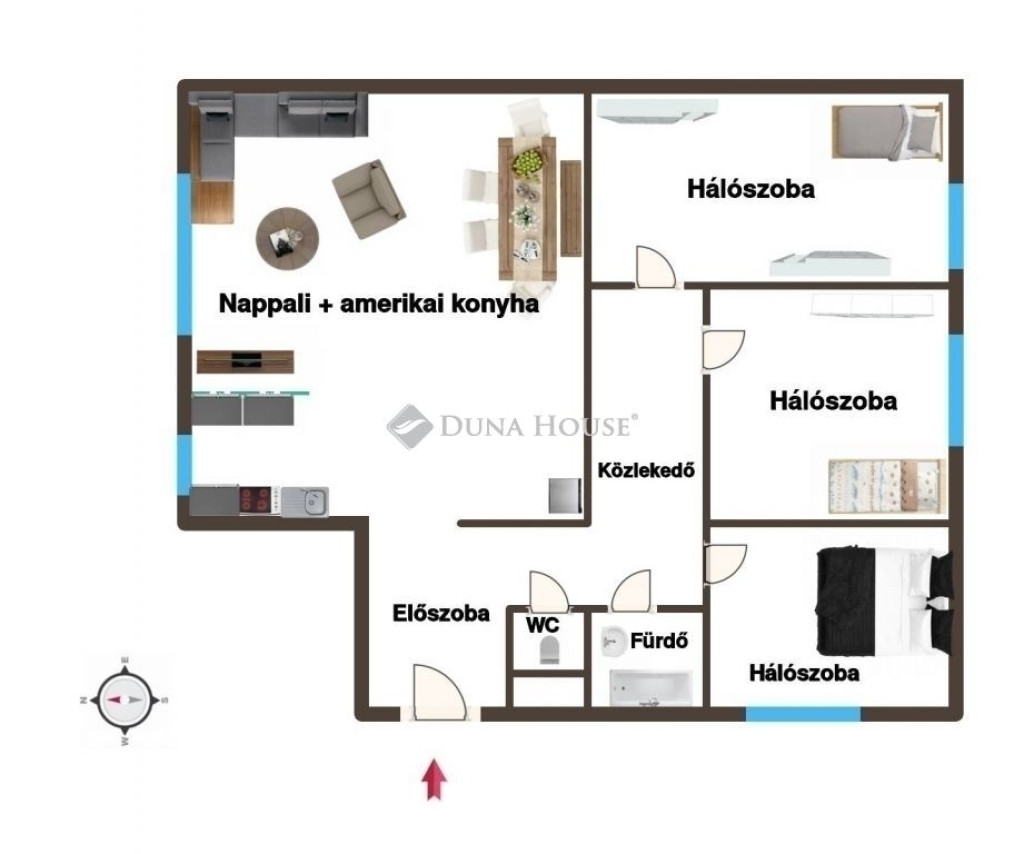 A nappali és a konyha összenyitásával egy hatalmas közösségi tér alakult ki, ahol a család együtt lehet! Elszeparáltan ettől a közös tértől pedig 3 db élhető méretű hálószoba van ebben az Otthonban!