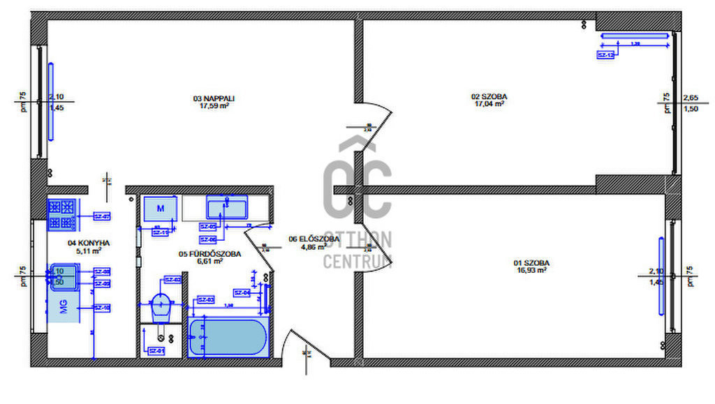 két tájolású, verőfényben úszó lakószobák