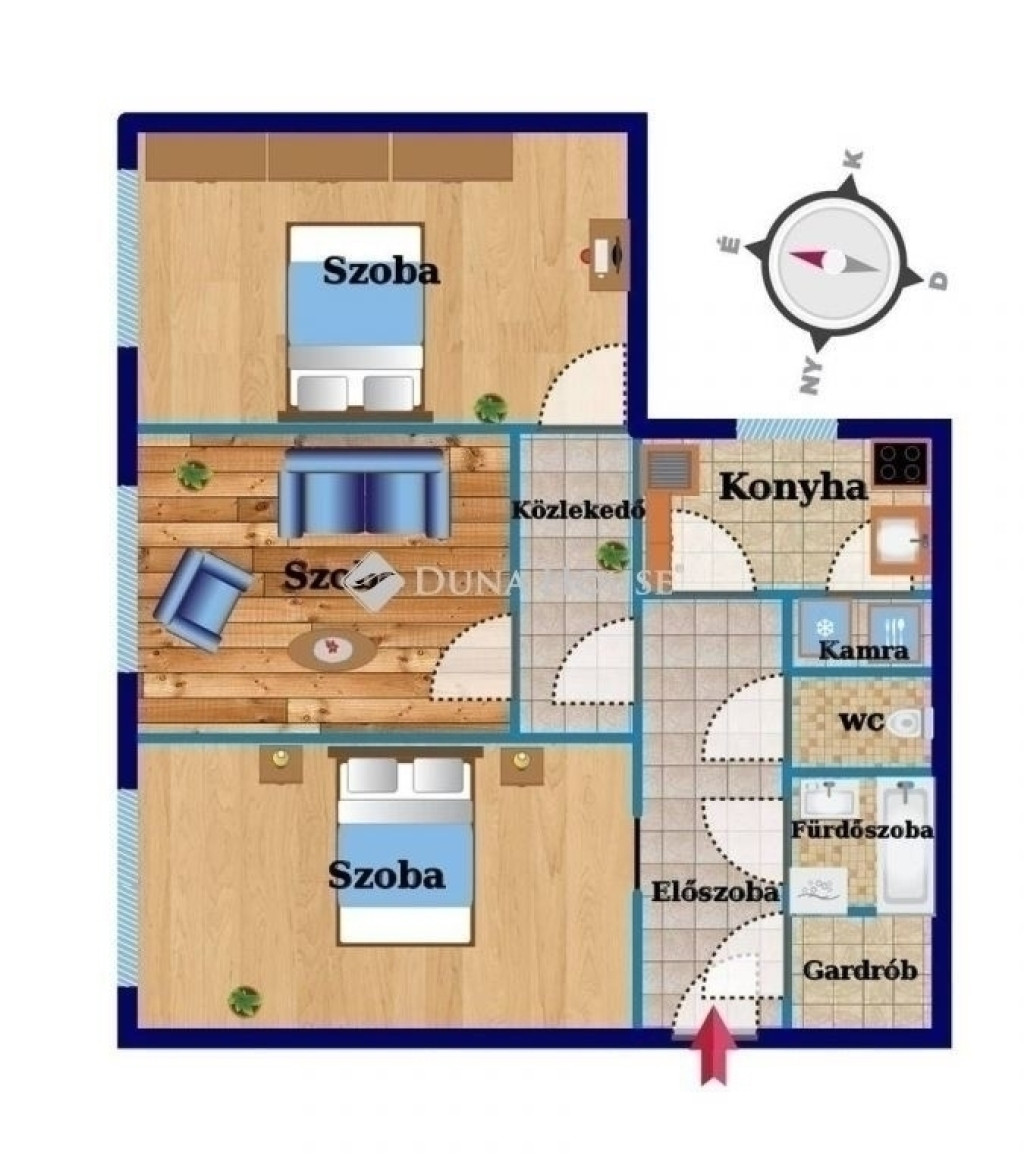 Az ingatlan egyik legnagyobb előnye a kiváló elosztás és a tágas terek: három külön nyíló, nagyméretű szoba biztosít kényelmes lakhatást akár családok számára is. A lakás átgondolt kialakítású, jól bútorozható, a helyiségek világosak és élhetőek.
